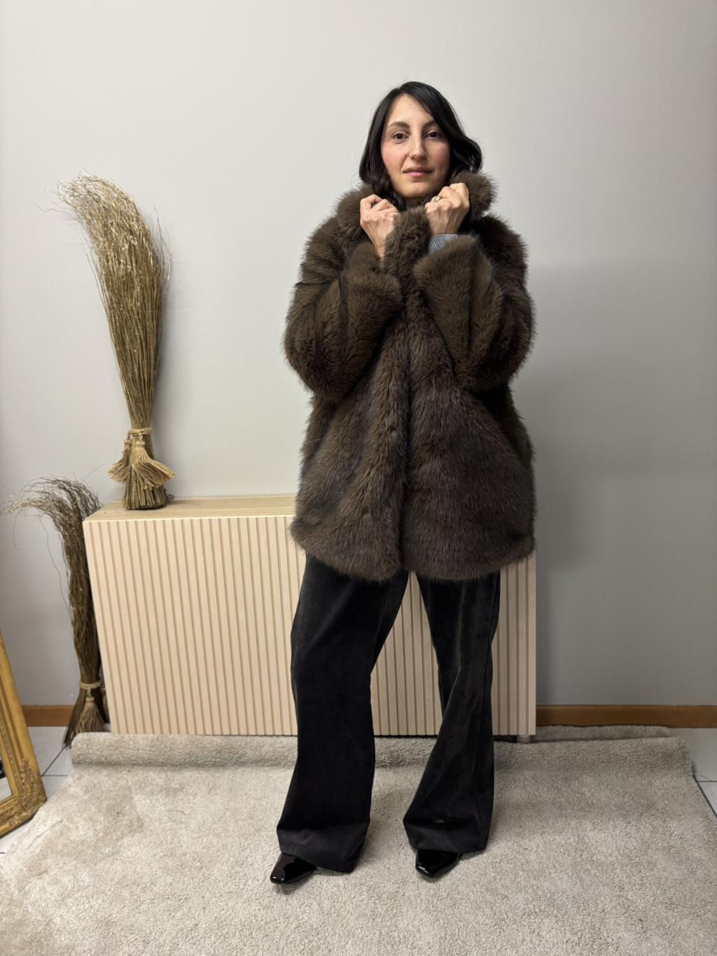 Cappotto cinturato, con vestibilità a vestaglia. Il taglio della spalla è raglan e grazie alla cintura si può sagomare la vestibilità nel punto vita. Tasche applicate e un bottone a chiusura. Composizione 92% poliestere, 8% viscosa Varianti colore disponibili moro e nero. Vestibilità regolare (L=44/46)